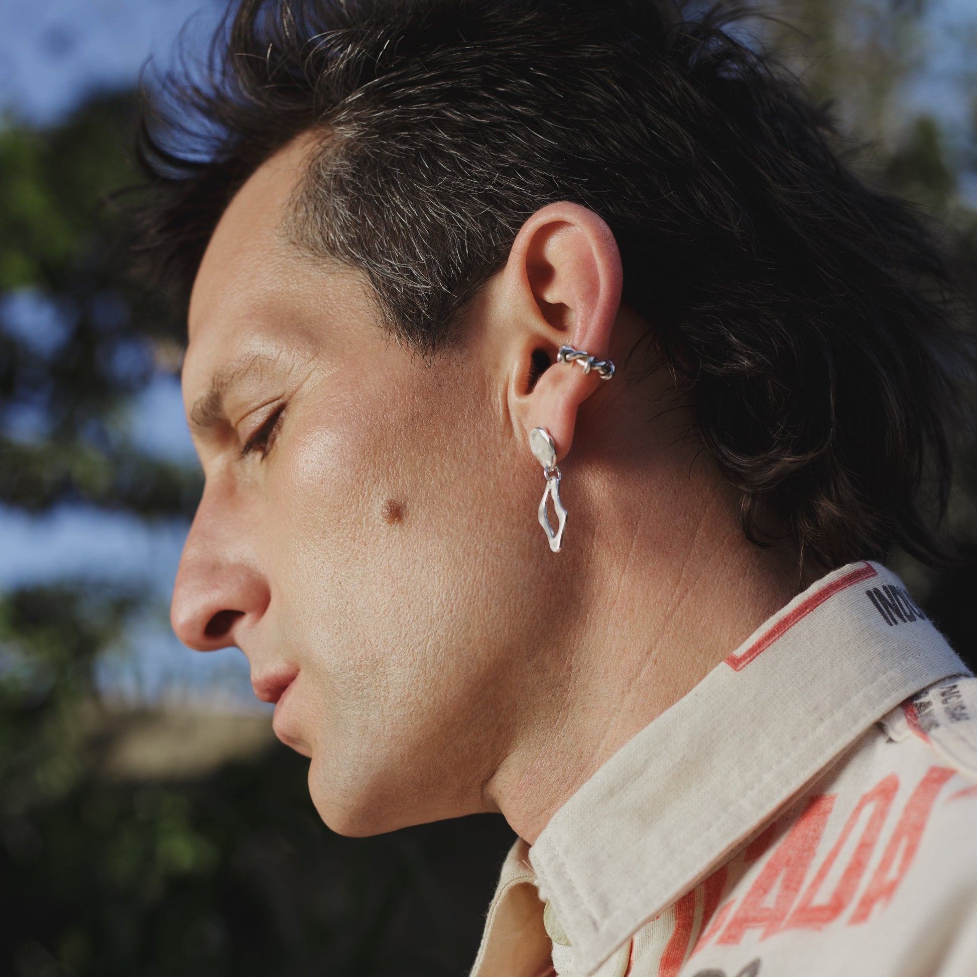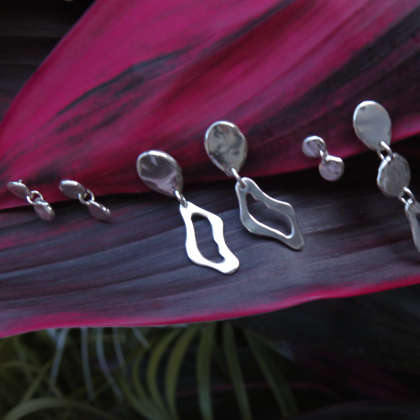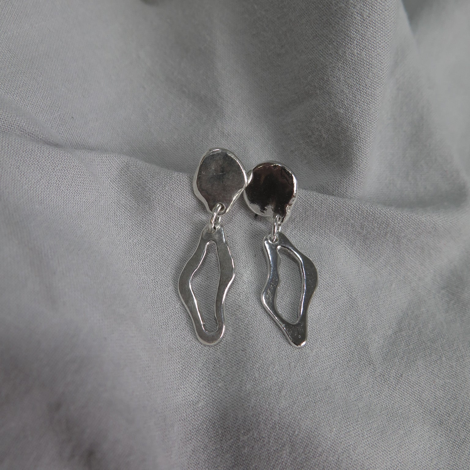 El movimiento de este aro hace que se ilumine el rostro por la forma y el brillo llamativo que lo compone, está hecho a mano en plata 980 con un largo de 3 a 4 cms, muy cómodos y livianos.