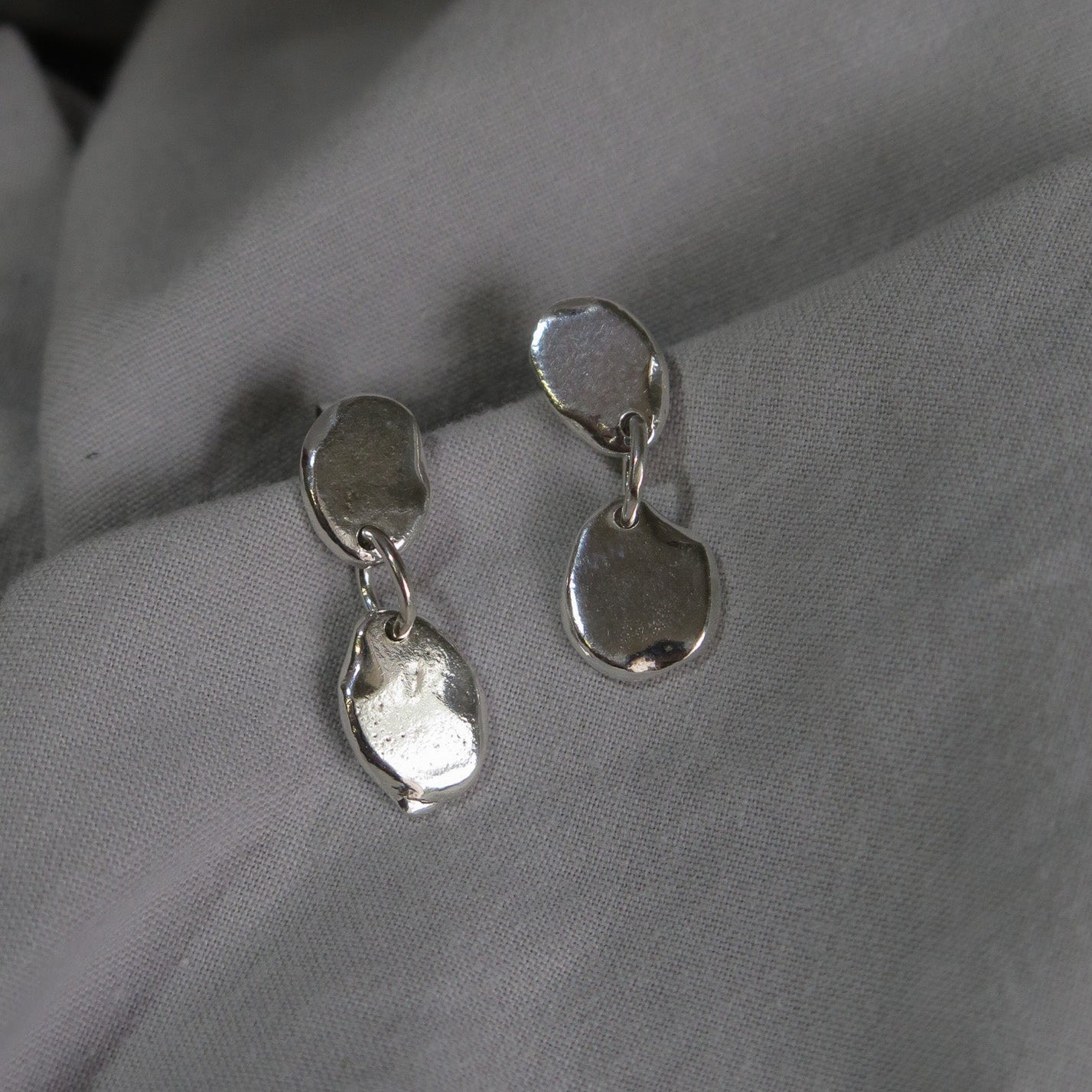 Los aros Ygró reflejan la luz de una manera única, todas las medallitas que componen esta pieza son hechas a mano y el calor del fuego al punto de fundición construye cada una de manera irrepetible.